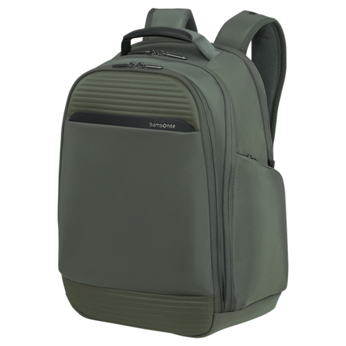 תיק גב Samsonite בצבע ירוק זית, כולל תא ייעודי למחשב נייד, גב מרופד, ורצועות נוחות לנשיאה ממושכת. מתאים לסטודנטים, אנשי עבודה ושימוש יומיומי בעיר ובדרך.