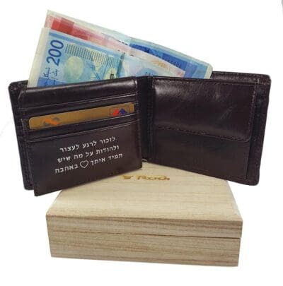 ארנק לגבר עם חריטה / תמונה 100% עור אמיתי כולל תפילת הדרך