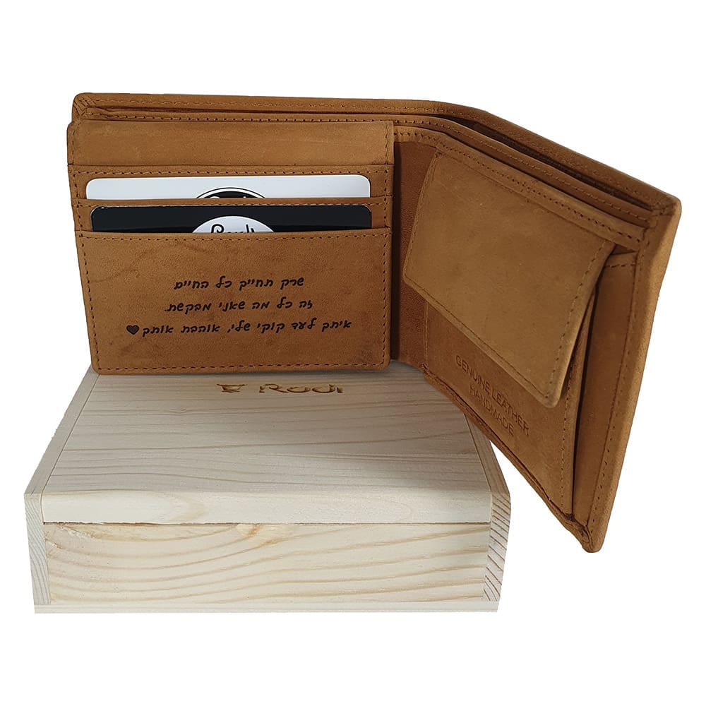 הארנק בצבע קאמל מייפל וניתן לבצע תמונה אישית