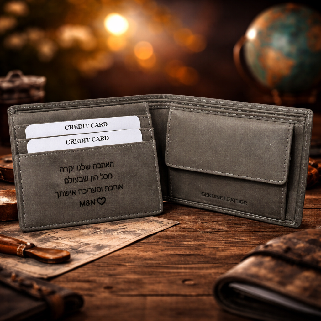 ארנק עם חריטה אישית לגבר – מתנה מרגשת ואיכותית