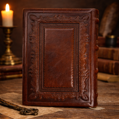 כריכת הספר מיוצרת מעור מובחר, המעניק לו עמידות ותחושת יוקרה. כל שלב בעיצוב מתבצע בקפידה,