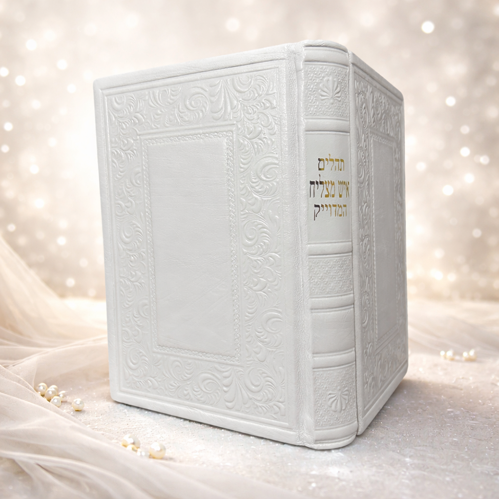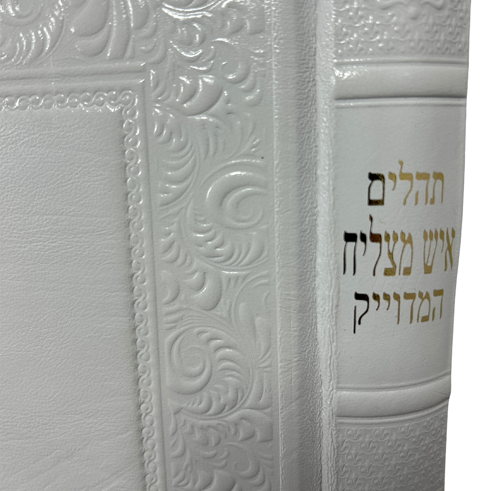 תהילים איש מצליח בכריכת עור לבנה מהודרת