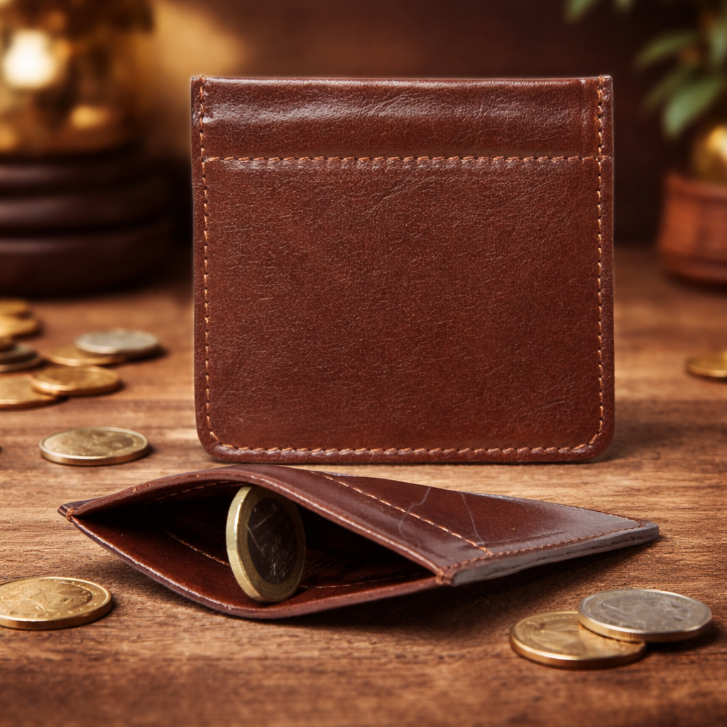 ארנק מטבעות מעור איטלקי חום בעבודת יד, עם קפיץ עמיד ונוחות נשיאה יומיומית. תוצרת איטליה, איכות יוקרתית, חריטה אישית ומשלוח חינם עד הבית.