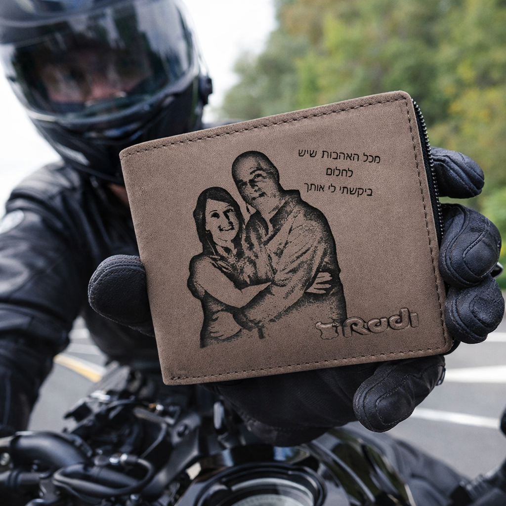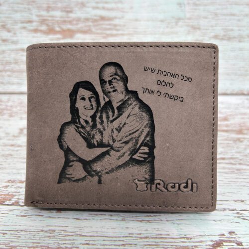ארנק עור לגבר עם חריטה מתאים לימי הולדת, ימי נישואין, וחגים מיוחדים.