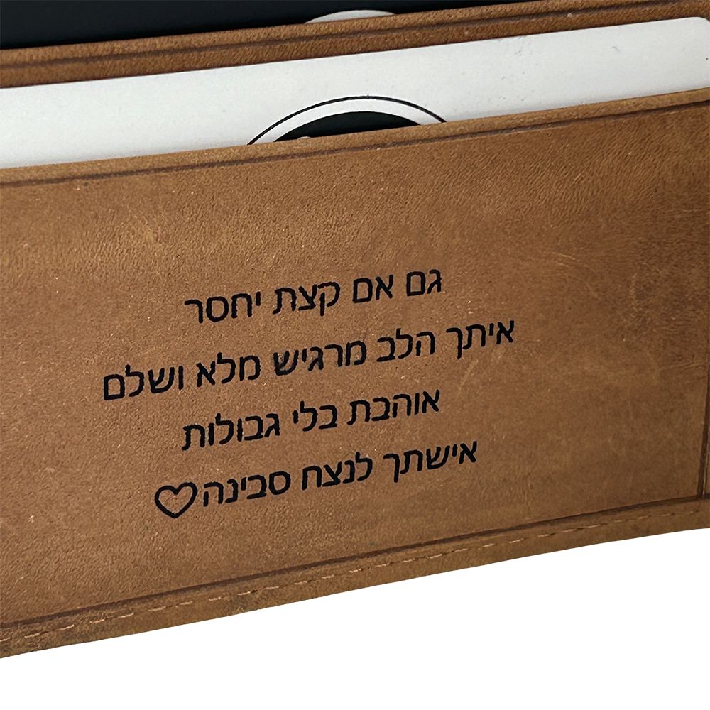 ארנק עור עם תמונה חרוטה יוצר חיבור רגשי יומיומי וגם מעניק שימושיות גבוהה, ולכן לקוחות רבים בוחרים בו כמתנה משמעותית לימי הולדת, לאירוסים, ולחגים.