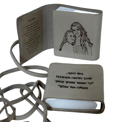 השילוב בין הטקסטים הקדושים לבין חריטה מותאמת אישית הופך את המוצר הזה לשילוב מושלם בין רוח, לב, ואומנות. בכל פעם שמחזיקים את הספר ביד, נזכרים באדם שנתן אותו. הספר מלווה ברצועות עור איכותיות, בעיצוב עדין ונשי, וניתן להזמין אותו גם בכמויות – לאירועים, בתי ספר, סדנאות נשים או ברכות לחיילות.