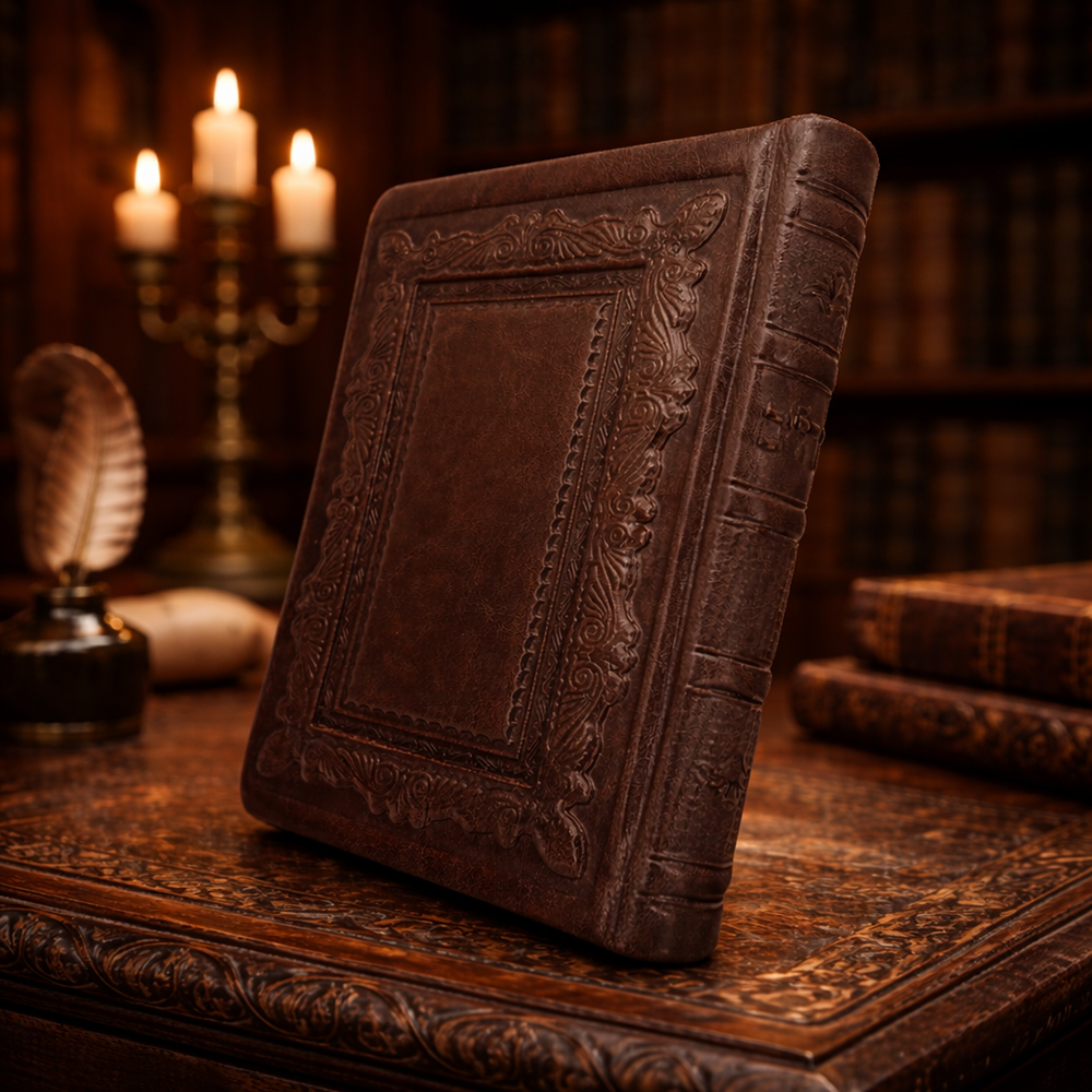 איכות העור הזה מורגשת מיד כאשר אוחזים בספר, ומעניקה תחושה של יוקרה ואצילות.