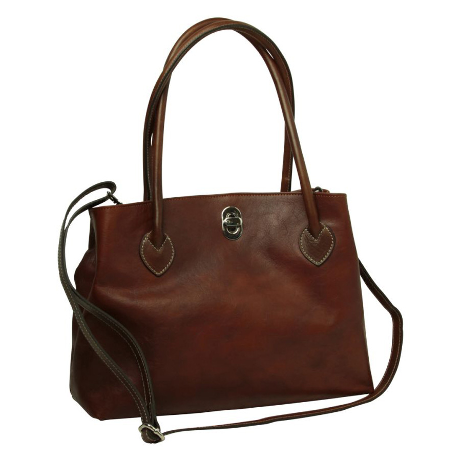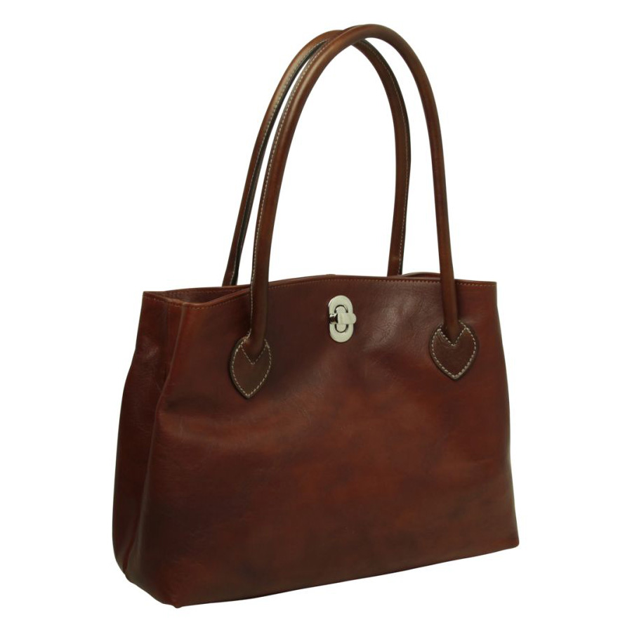 תיק איטלקי מעור חום מהגוני עם שני ידיות לאישה – Old Angler Italy