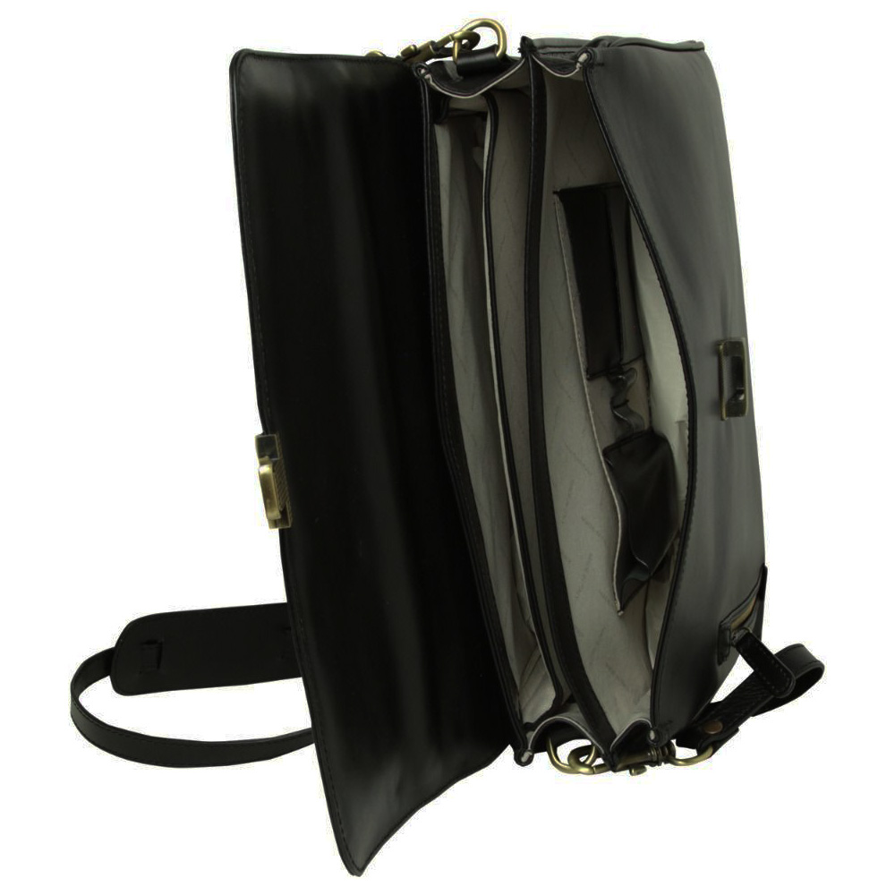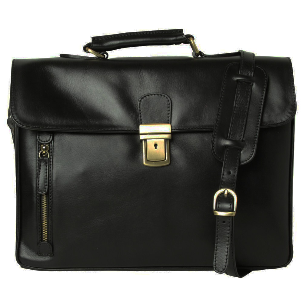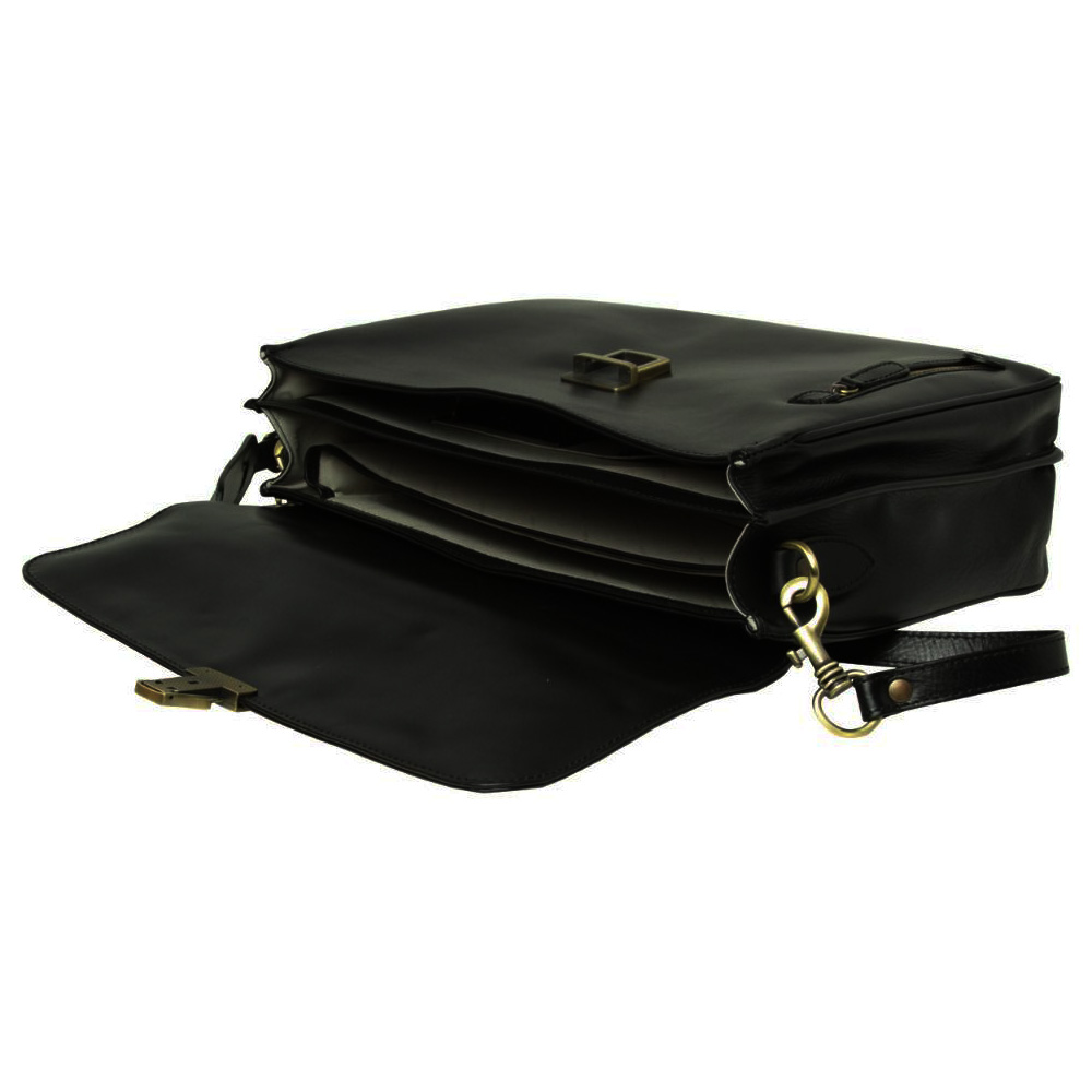 תיק מנהלים שחור מעור איטלקי בעבודת יד עם עיצוב קלאסי, רצועת כתף נוחה ותאים חכמים למחשב ולמסמכים.