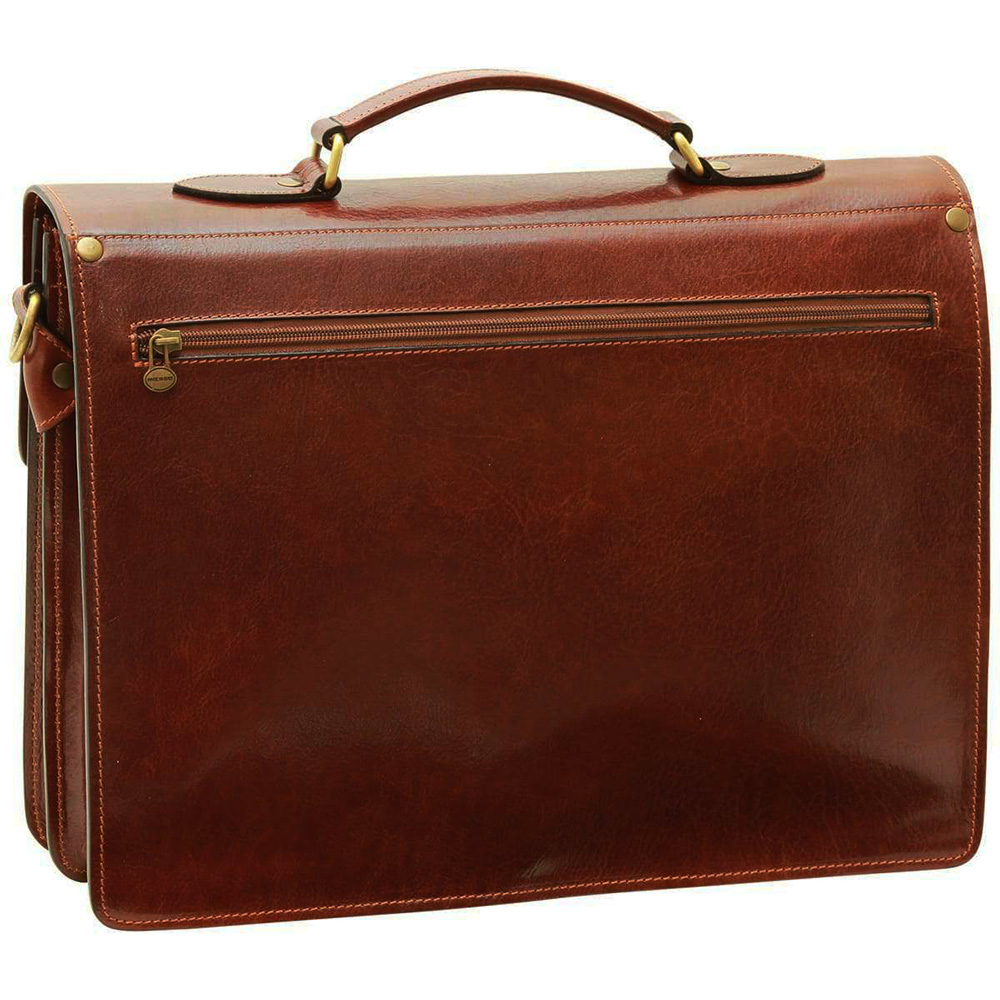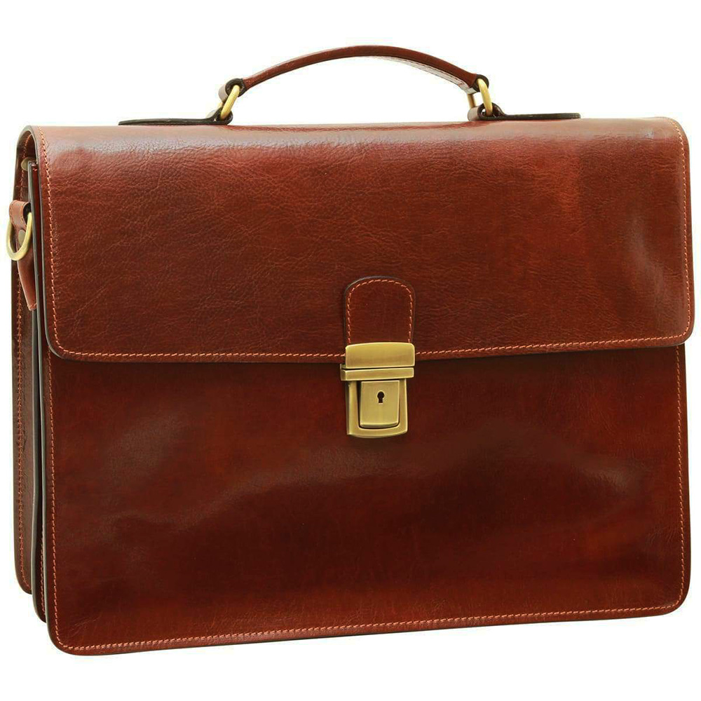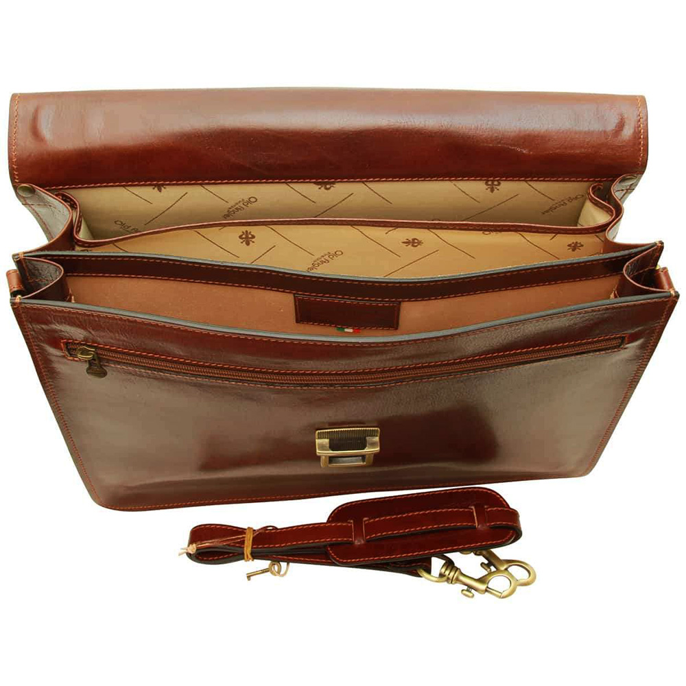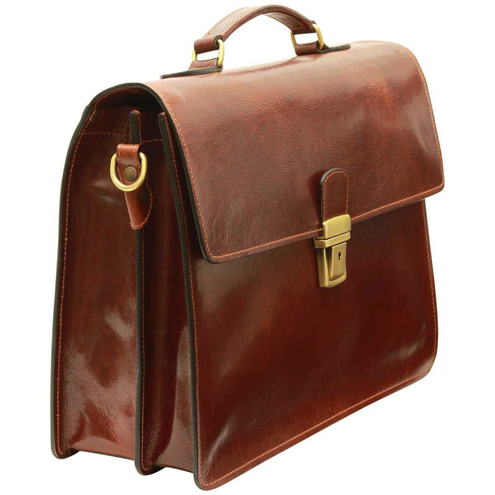 תיק עסקים מעור איטלקי חום בעבודת יד, עם תא מרופד למחשב נייד,