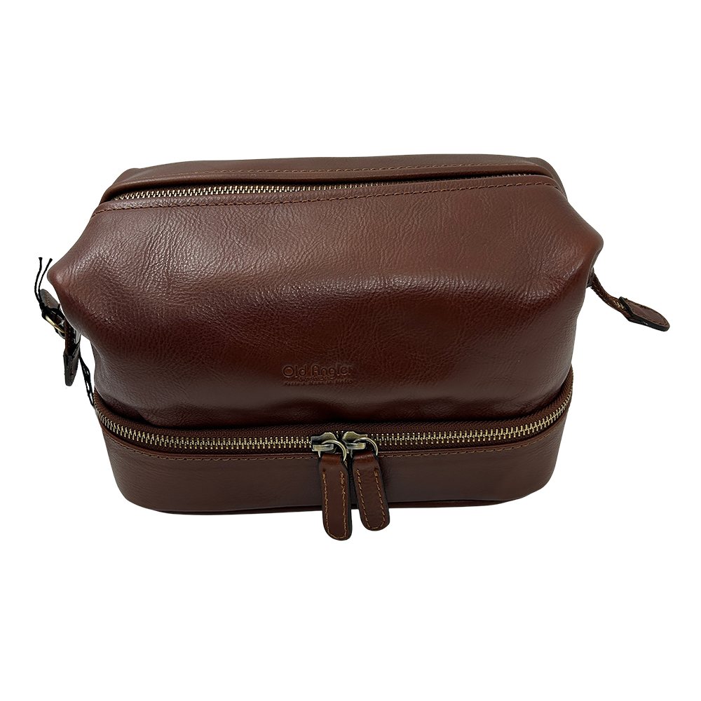 תיק רחצה מעור איטלקי אמיתי דגם 4169 מבית Old Angler Italy. יוקרה, עמידות, חלוקה חכמה, עיצוב אלגנטי, רוכסן עילי, משלוח חינם וייעוץ אישי מרודי.