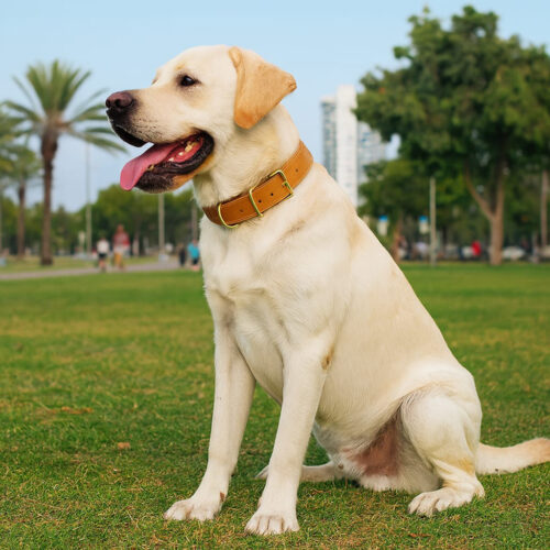 קולר עור יוקרתי לכלב עם חריטה אישית פותר את הבעיה הזאת בצורה אלגנטית.