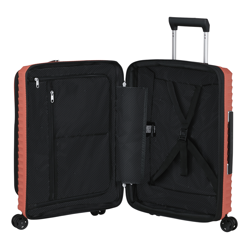 Samsonite Upscape Spinner 55cm Clay מספק טרולי אלגנטי לנשות עסקים, ולכן את נהנית מקלילות, יציבות, וגם ארגון חכם.