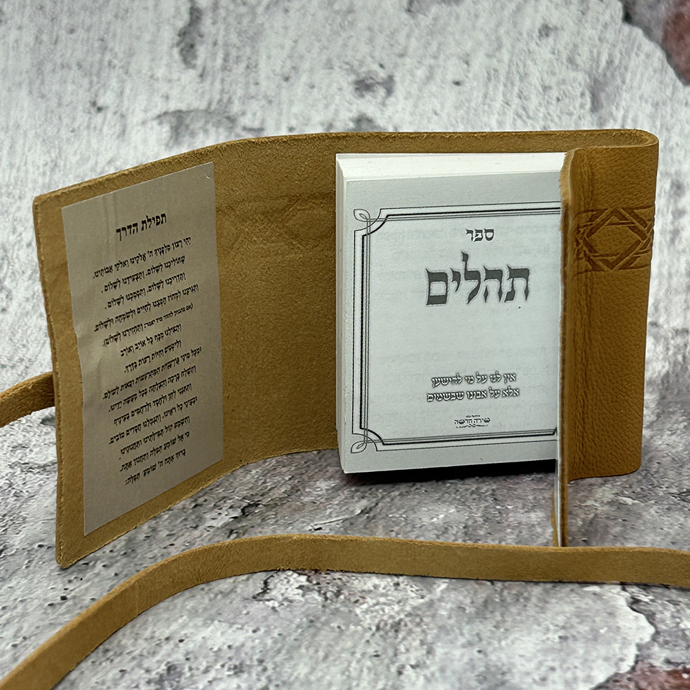 תהילים מעור כיס עם תפילת הדרך ורצועת קשירה