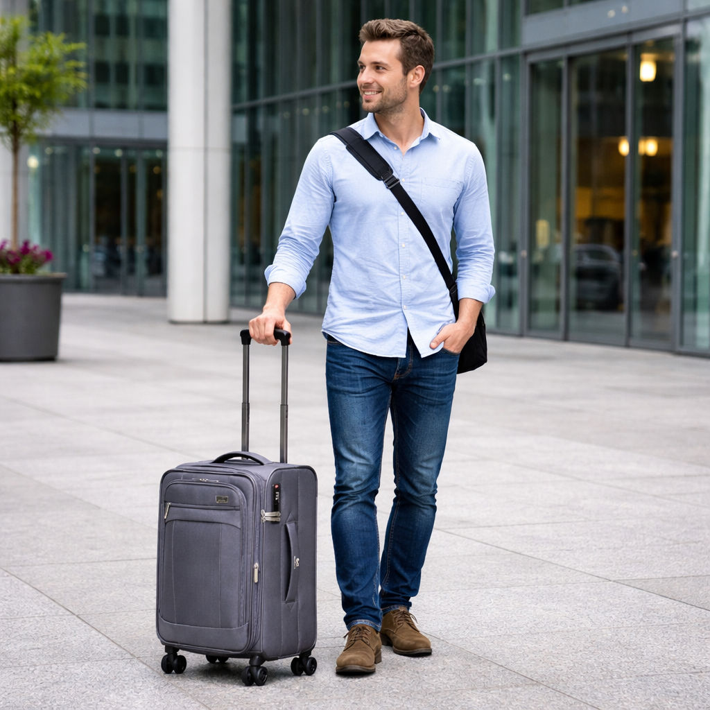 נרדפות: מזוודת טרולי עליה למטוס, טרולי 21 אינץ, מזוודה קבינה 56 ס״מ, טרולי נפח גדול, מזוודה קלה למטוס, טרולי בד איכותי