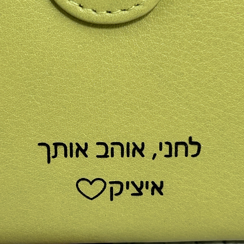 על גב הארנק את יכולה לבחור חריטה אישית כמו בדוגמה המרגשת שבתמונות.