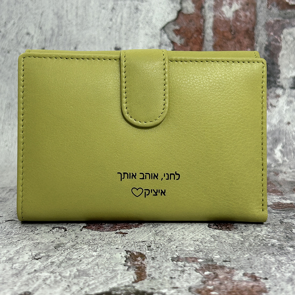 ארנק עור לנשים מעוצב עם חריטה אישית מעניק מתנה מרגשת וגם שימושית מאוד.